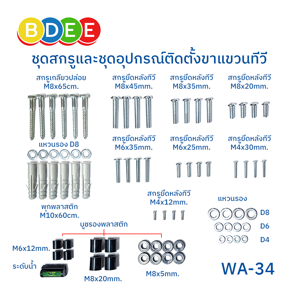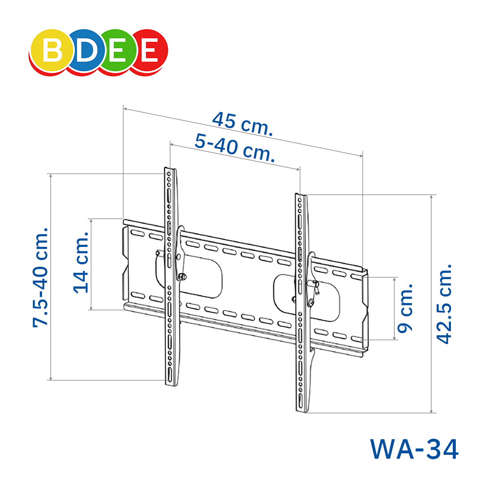 - ขนาดแผ่นเพลทของขาแขวน (กxย) 14x45 ซ.ม. - ขนาดความหนาของเหล็ก มีขนาด 1.6 มิลลิเมตร - รองรับรูด้านหลังทีวี แนวตั้งไม่เกิน 40 ซ.ม. และแนวนอนไม่เกิน 40 ซ.ม. - สามารถปรับก้มได้ประมาณ 12 องศา - สามารถใช้กับจอทีวีแบบ OLED, QLED, UHD, Smart TV, LED ได้ - ระยะห่างจากผนัง 3.7 ซ.ม. - รับน้ำหนักได้ 50 กิโลกรัม - มีคู่มือภาษาไทย - มีระดับน้ำ และชุดอุปกรณ์สำหรับการติดตั้ง รวมถึงน็อตยึดหลังทีวีให้ทุกรุ่น ทุกยี่ห้อ