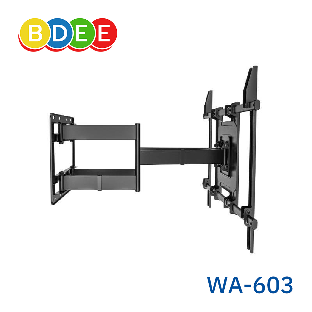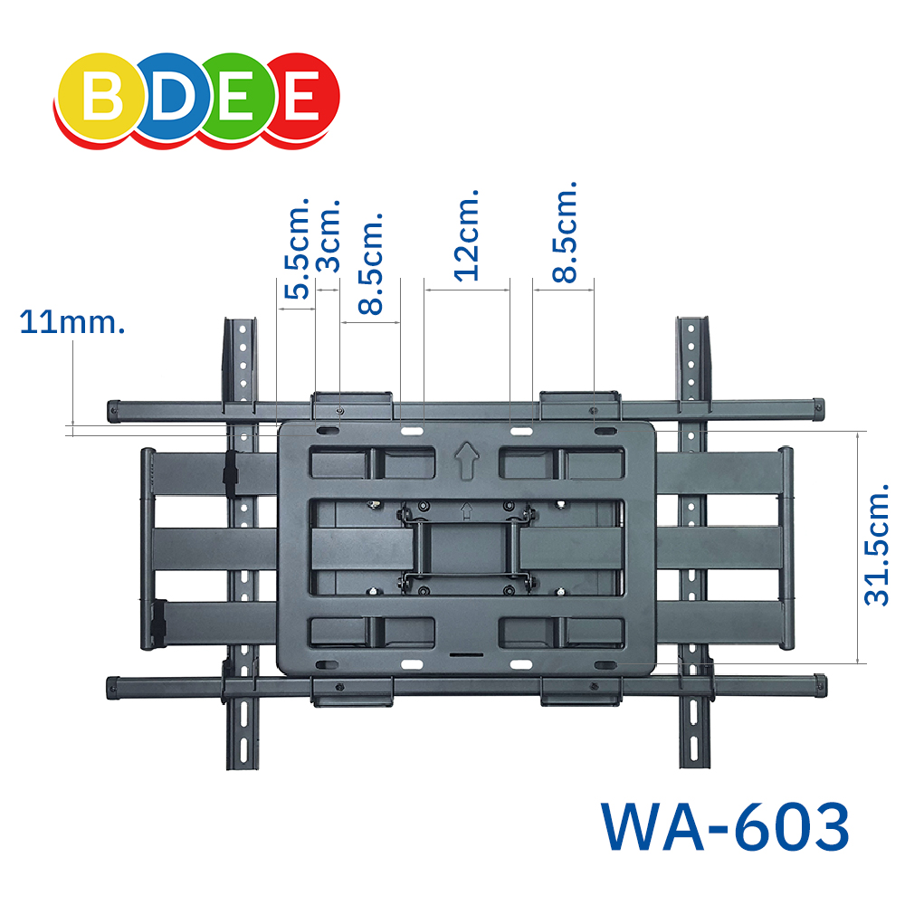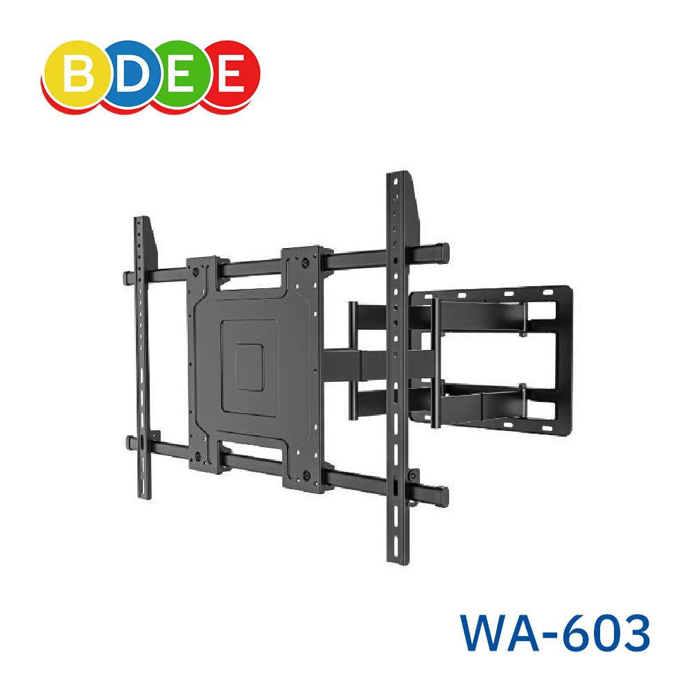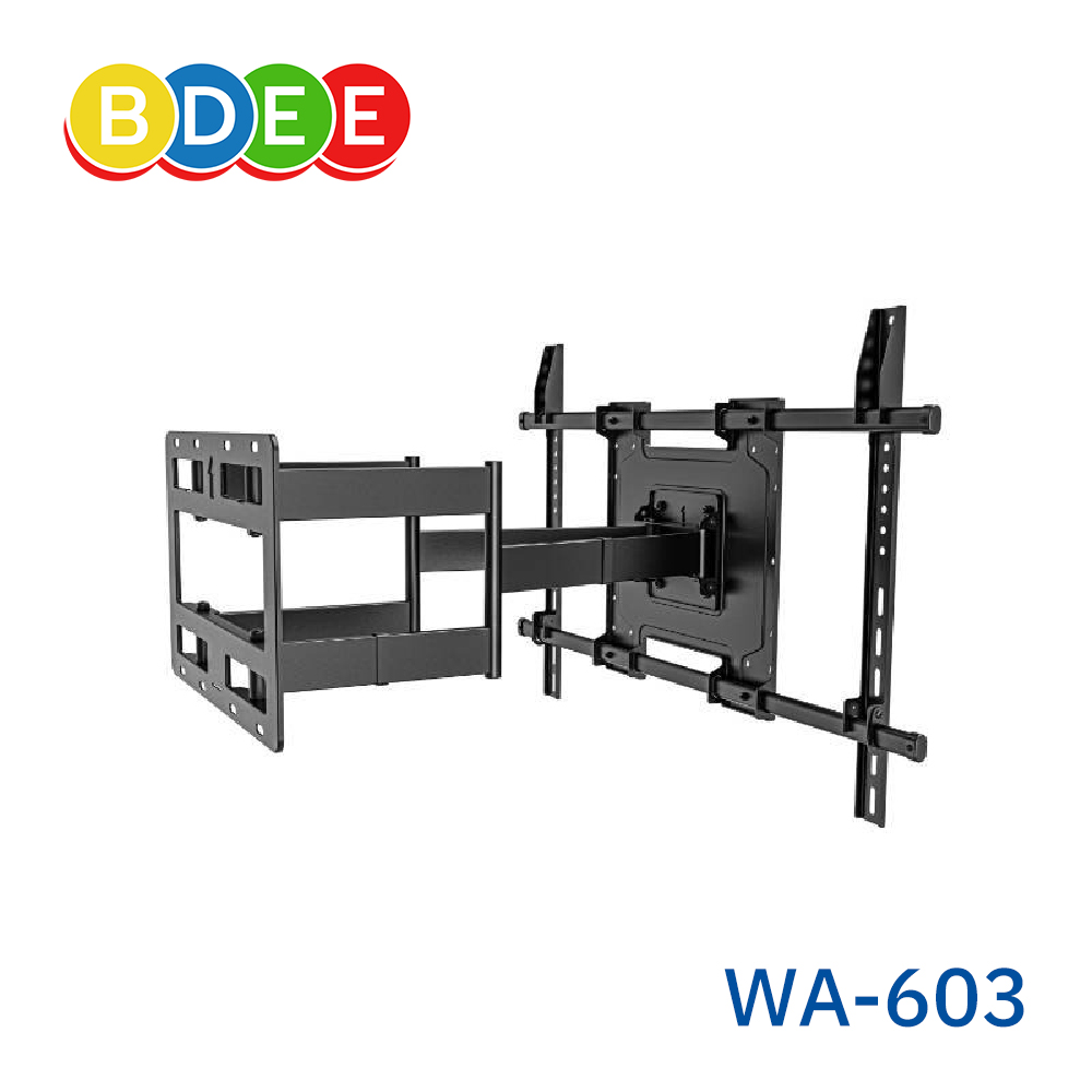 ขาแขวนทีวี BDEE รุ่น WA-603 เป็นขาแขวนทีวีแบบ 2 แขน มีเพลทหน้าขนาดใหญ่ เหมาะกับทีวีเครื่องใหญ่ ขนาดตั้งแต่ 55-100 นิ้ว สามารถยืดออกได้ไกลถึง 72 ซ.ม.