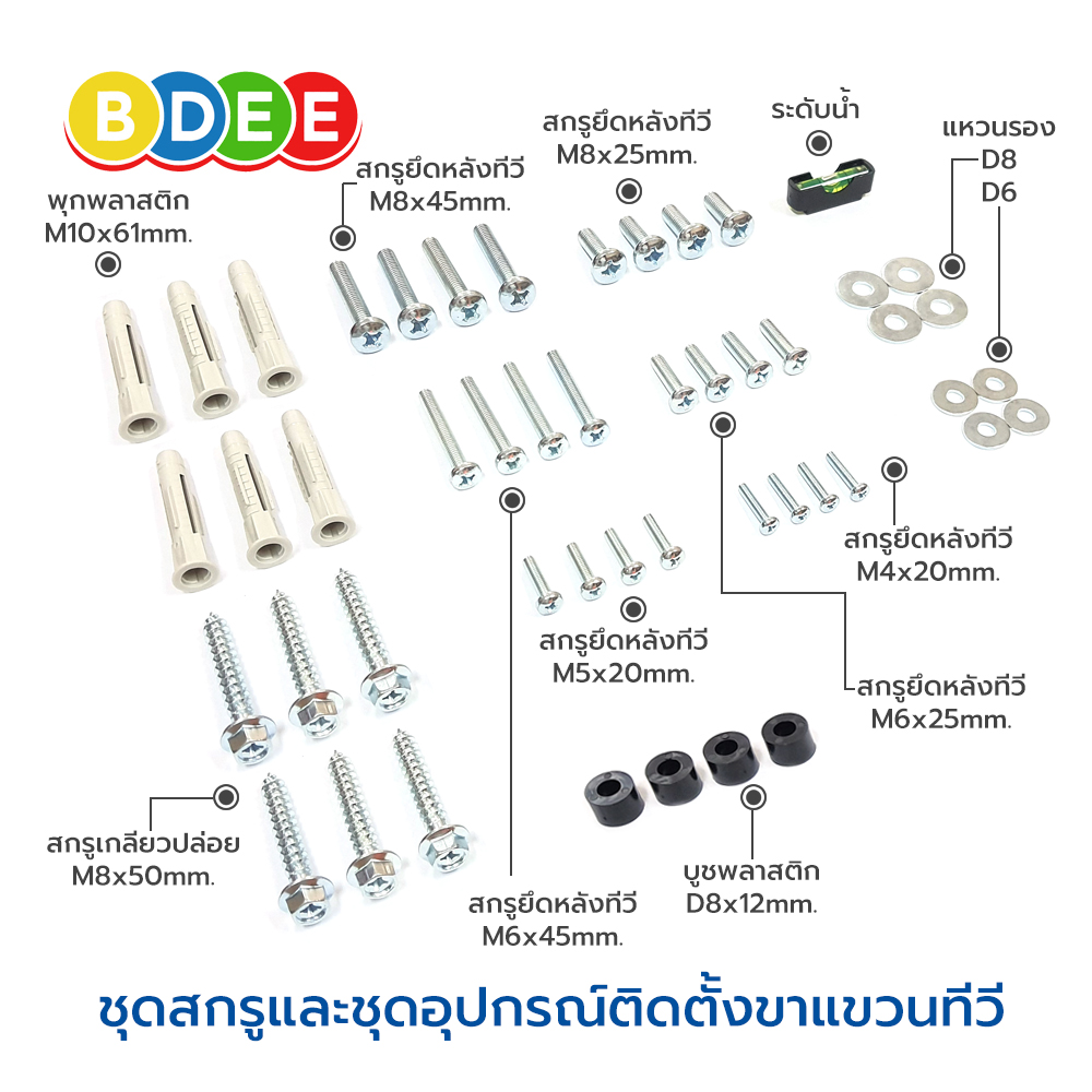 *** แนะนำใช้กับทีวีขนาด 50-100 นิ้ว ที่มีรูด้านหลัง แนวตั้งไม่เกิน 60 ซ.ม. แนวนอนไม่เกิน 90 ซ.ม. (VESA 30x30, 30x40, 40x40, 40x60, 40x80, 60x80, 60x90 ซ.ม.) และน้ำหนักไม่เกิน 100 กิโลกรัม