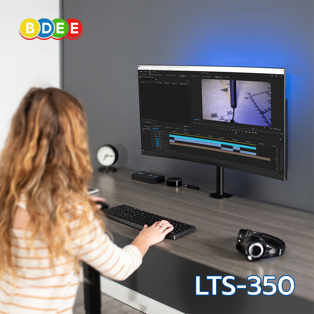 ขาตั้งจอมอนิเตอร์ BDEE รุ่น LTS-350 แบบยึดขอบโต๊ะ สามารถติดจอมอนิเตอร์ ตั้งแต่ขนาด 24-34 นิ้วได้ วัสดุเป็นเหล็กพ่นสีอบความร้อนอย่างดี (Powder Coating) สามารถเลื่อนระดับแป้นยึดจอขึ้นลง ส่ายซ้ายขวารวมถึงปรับก้มเงย และหมุนหน้าจอได้ 360 องศา รูปทรงสวยงาม งานปราณีต เรียบร้อย ทำให้เป็นระเบียบ และประหยัดพื้นที่บนโต๊ะทำงาน ทำให้โต๊ะทำงานมีพื้นที่เหลือใช้ทำงานอย่างอื่น