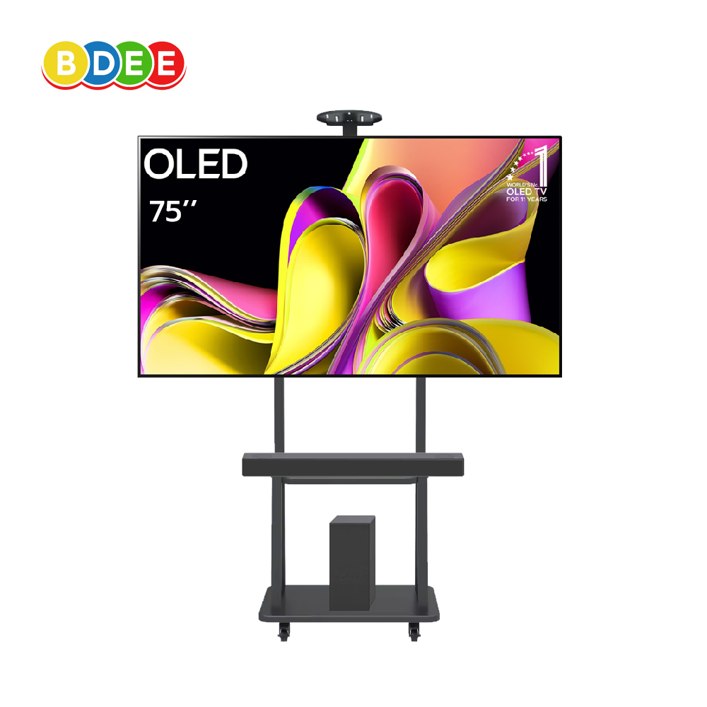 ชุดขาตั้งทีวีแบบเคลื่อนย้ายได้ BDEE รุ่น S900 มีล้อเลื่อนล็อคได้ 4 ล้อ มาพร้อมชั้นวาง 2 ชั้น ตัวฐานเป็นเหล็กหนาวางของได้ มั่นคง แข็งแรง รับน้ำหนักได้มาก เหมาะสำหรับห้องเรียน ห้องประชุมบริษัทฯ ห้างร้าน หรือสำนักงานต่างๆ รวมถึงบ้านพักอาศัยทั่วไป ตัวชิ้นงานผลิตจากเหล็กอย่างดี งานปราณีต เรียบร้อย รูปทรงสวยงาม