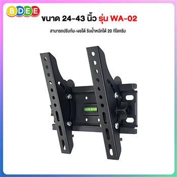 ขาแขวนที่วี BDEE รุ่น WA-02 เป็นขาแขวนทีวีติดผนัง แบบปรับก้ม-เงยได้ ใช้กับทีวีขนาด 24-43 นิ้ว ทุกรุ่นทุกยี่ห้อ รับน้ำหนักได้ไม่เกิน 20 กิโลกรัม รองรับรูหลังทีวี แนวตั้งไม่เกิน 20 ซ.ม. และแนวนอนไม่เกิน 20 ซ.ม. ห่างจากผนัง 5 ซ.ม.เหล็กหนา 1.4 มิลลิเมตร น้ำหน